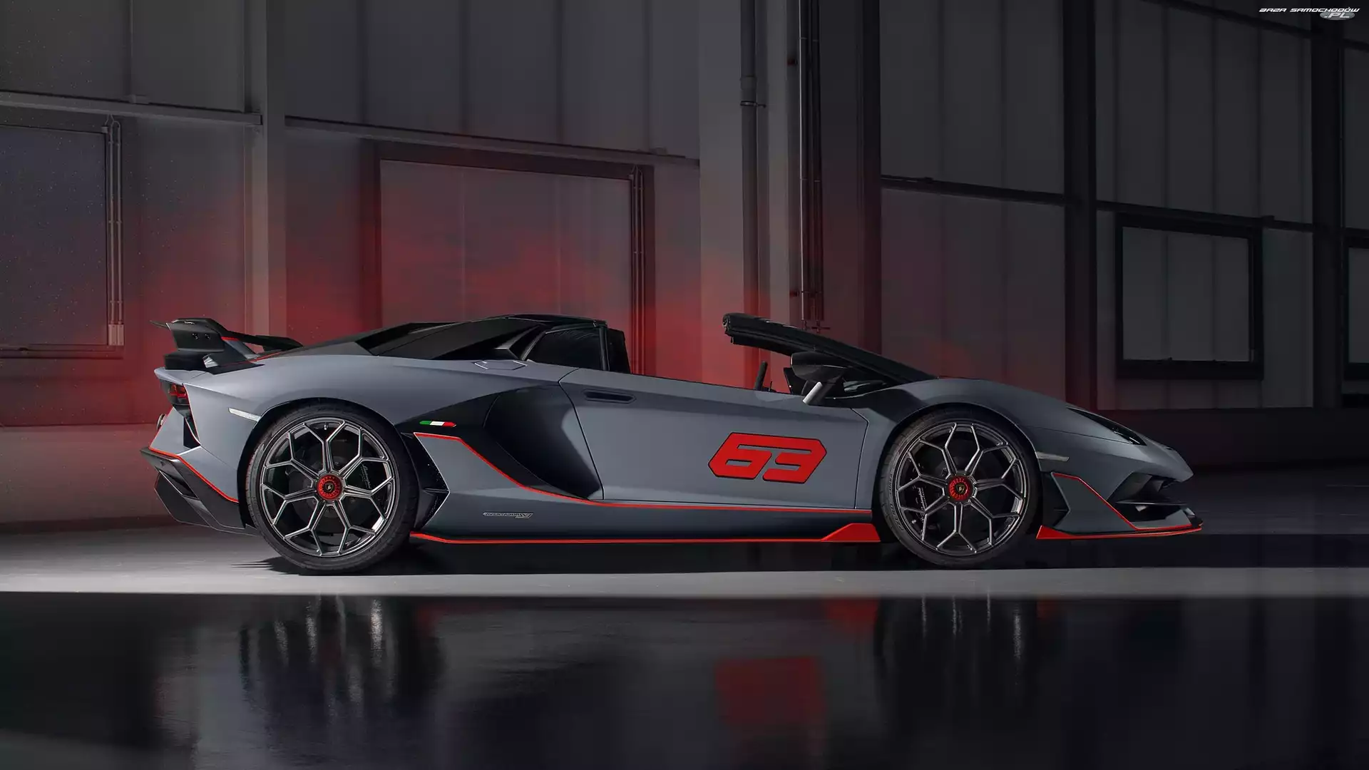 Samochód: Roadster, Ściana, Lamborghini Aventador SVJ 63, Podświetlenie