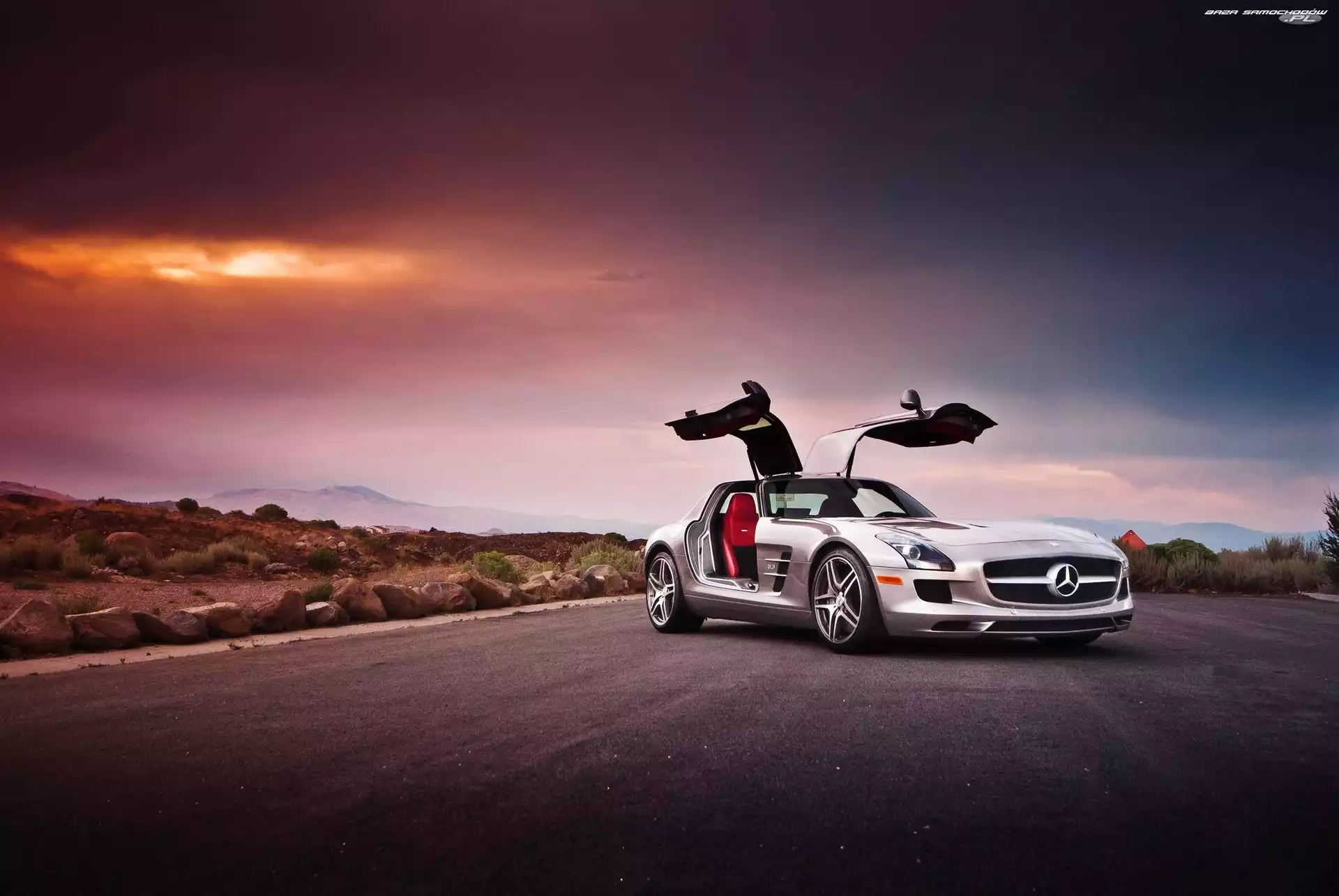 Mercedes-Benz SLS Roadster, AMG, Hamulcowe, Zaciski SLS, AMG SLS AMG GT, Mercedes, Benz Plaża, Czerwony, Mercedes SLS AMG, Mercedes-Benz SLS Roadster Sylwetka, Mercedes Benz SLS, Piękna Mercedes SLS, Droga, Las Mercedes-Benz SLS AMG Kolumny, Mercedes, Wejście Mercedes-Benz SLS AMG, Żywopłot, Czerwony, Brama Mercedes SLS, Czerwony Wzgórza, Kładka, Mercedes SLS, Żółty, Chatka Alufelgi, Brabus, Mercedes SLS Droga, Mercedes SLS Zachód, Słońca